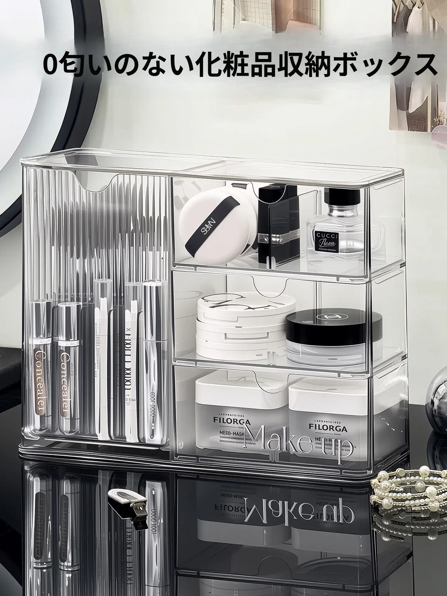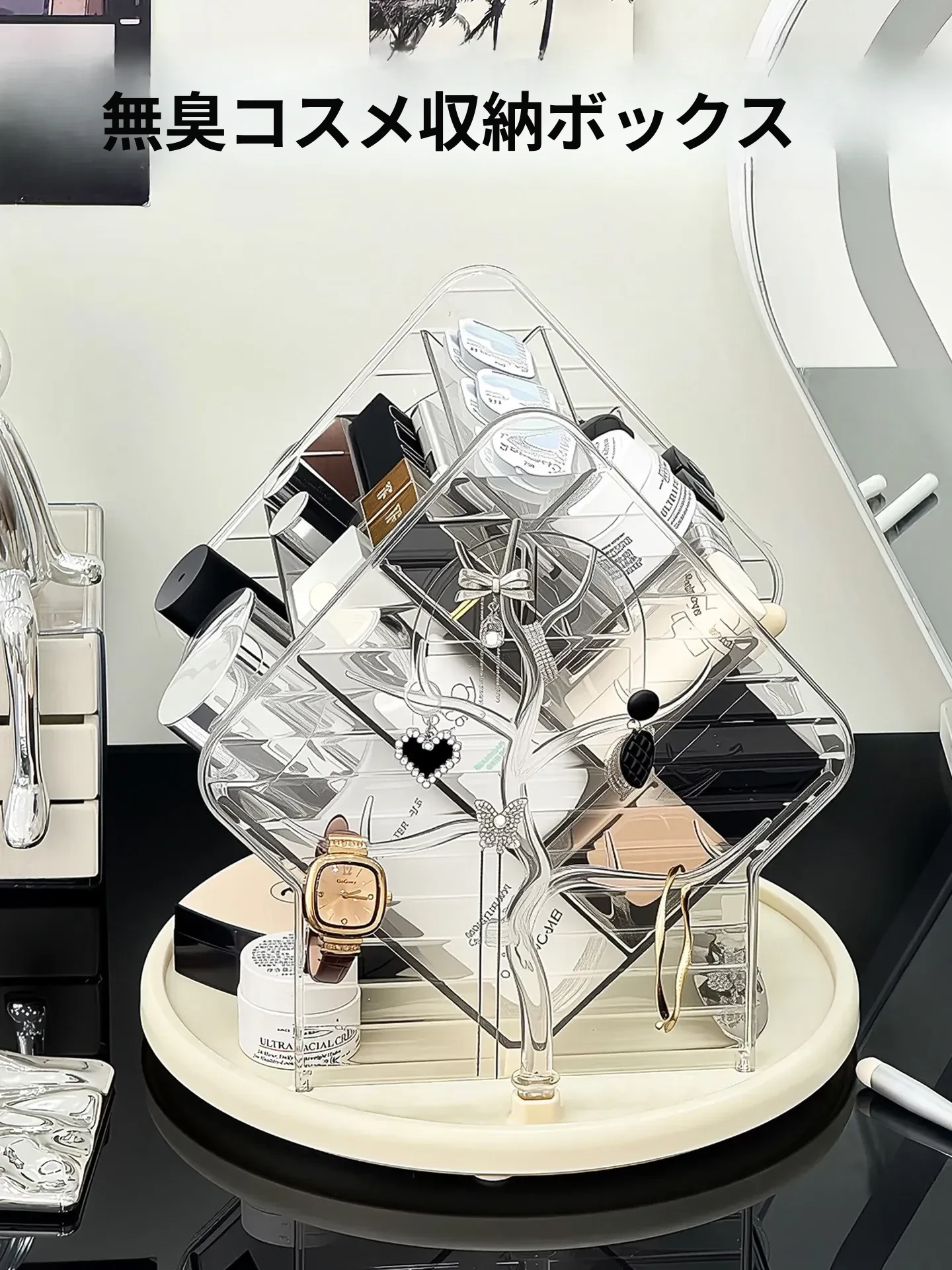 高級感溢れる化粧品収納ボックス!デスクトップ用メイク台に最適な大容量のスキンケアアイテム&フェイスマスク・香水整理棚。おしゃれで実用的、あなたのビューティースペースを美しく整えます!