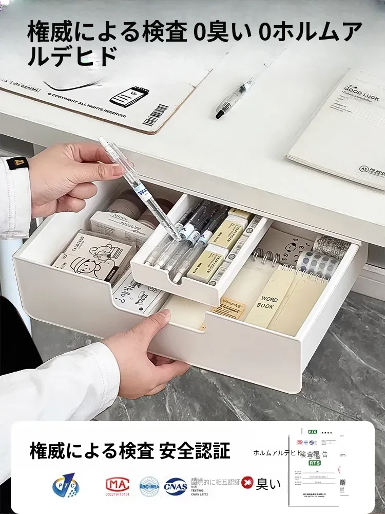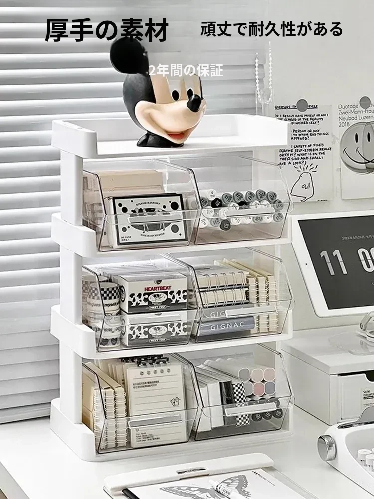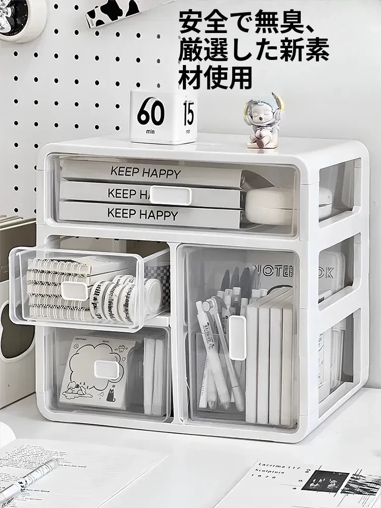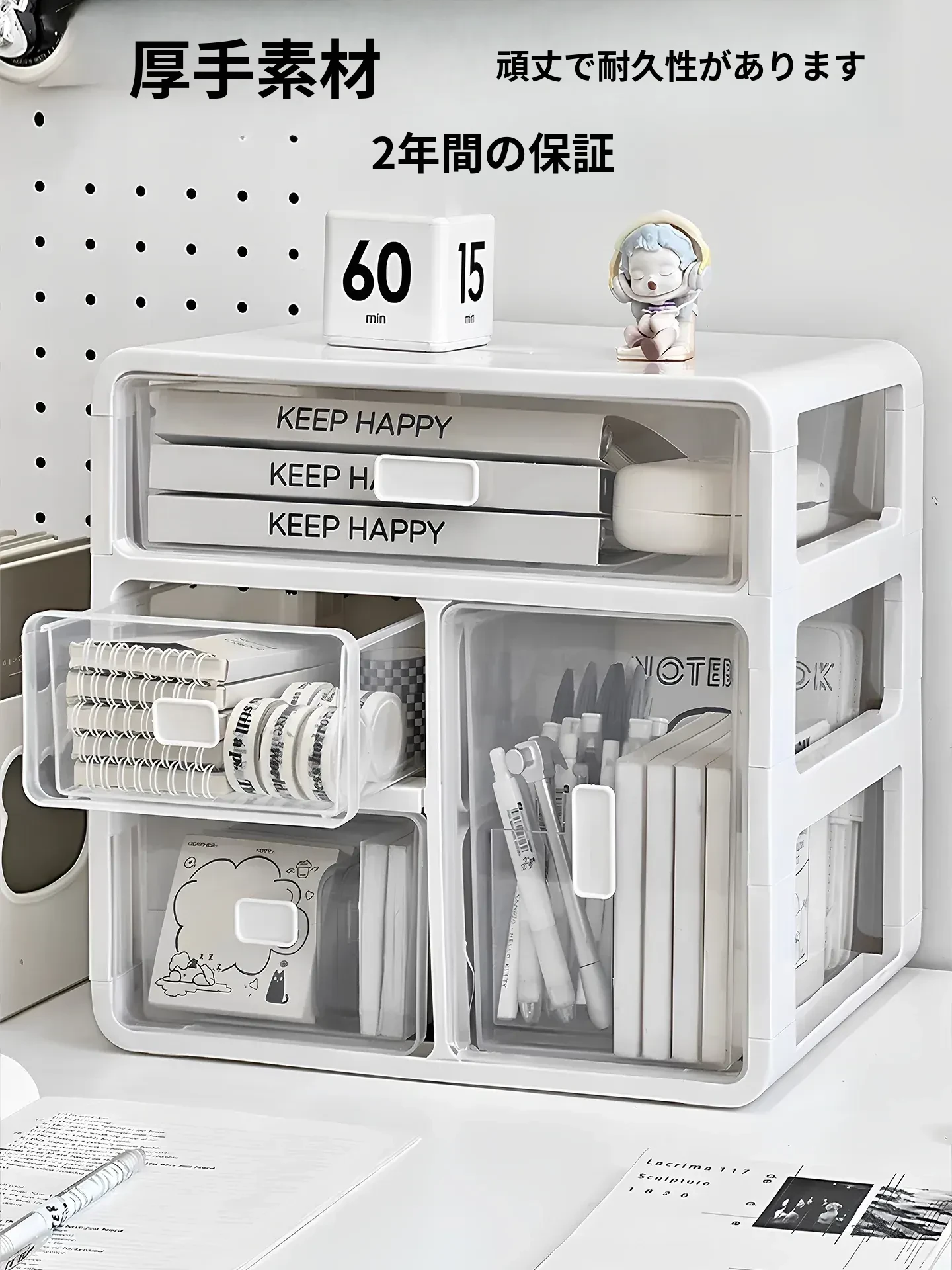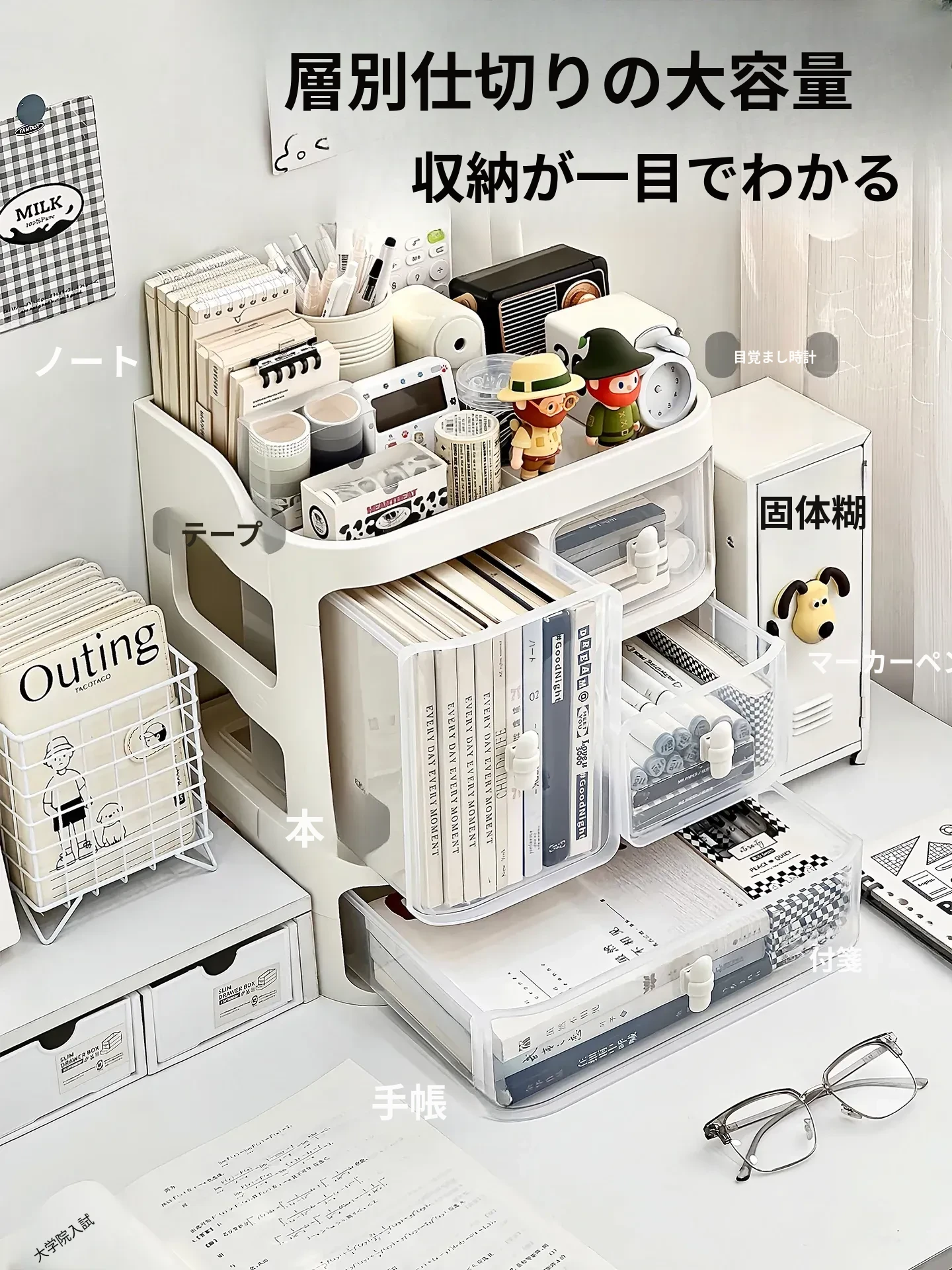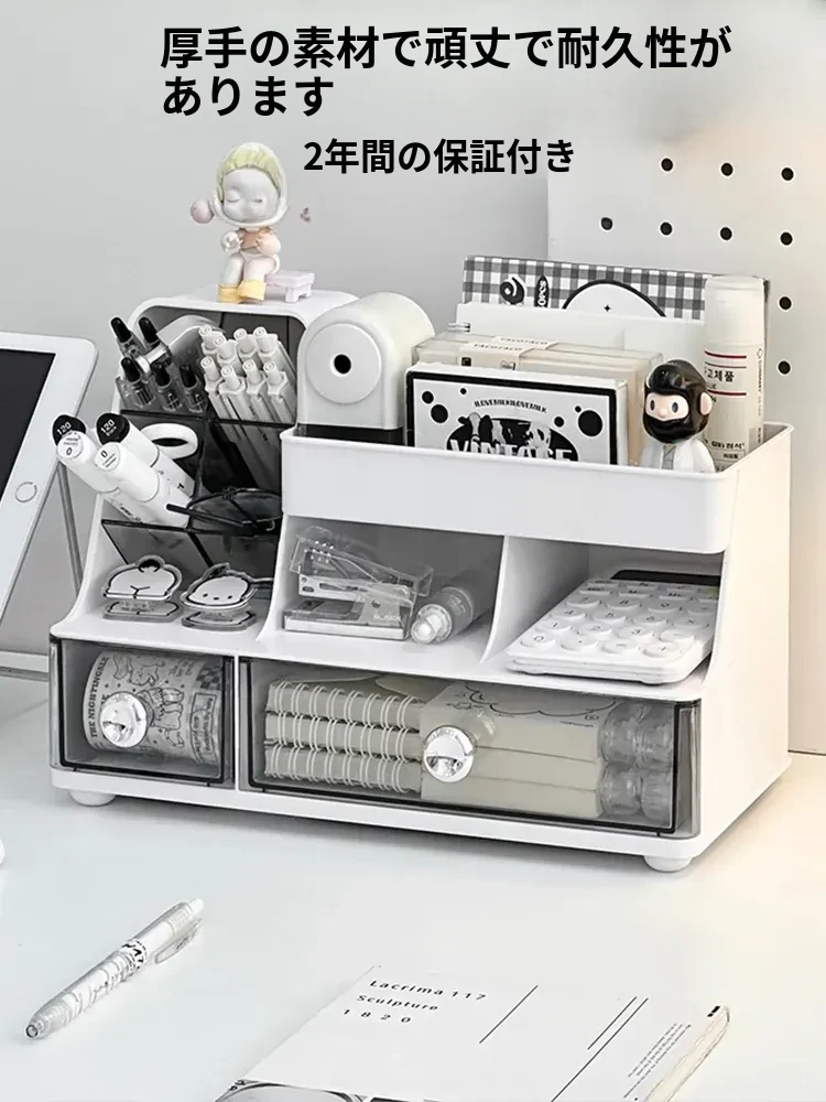 デスク上の大容量引き出し式収納ボックス|学生やオフィスに最適な文房具整理・雑貨収納ラック!スッキリとしたデザインで、作業効率アップを実現します。