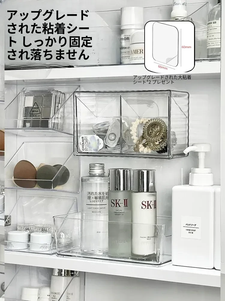 バスルーム用壁掛けミラーキャビネット収納ボックス - 洗面台・化粧品用透明防塵仕切りボックスで、清潔感あふれる整理整頓を実現!