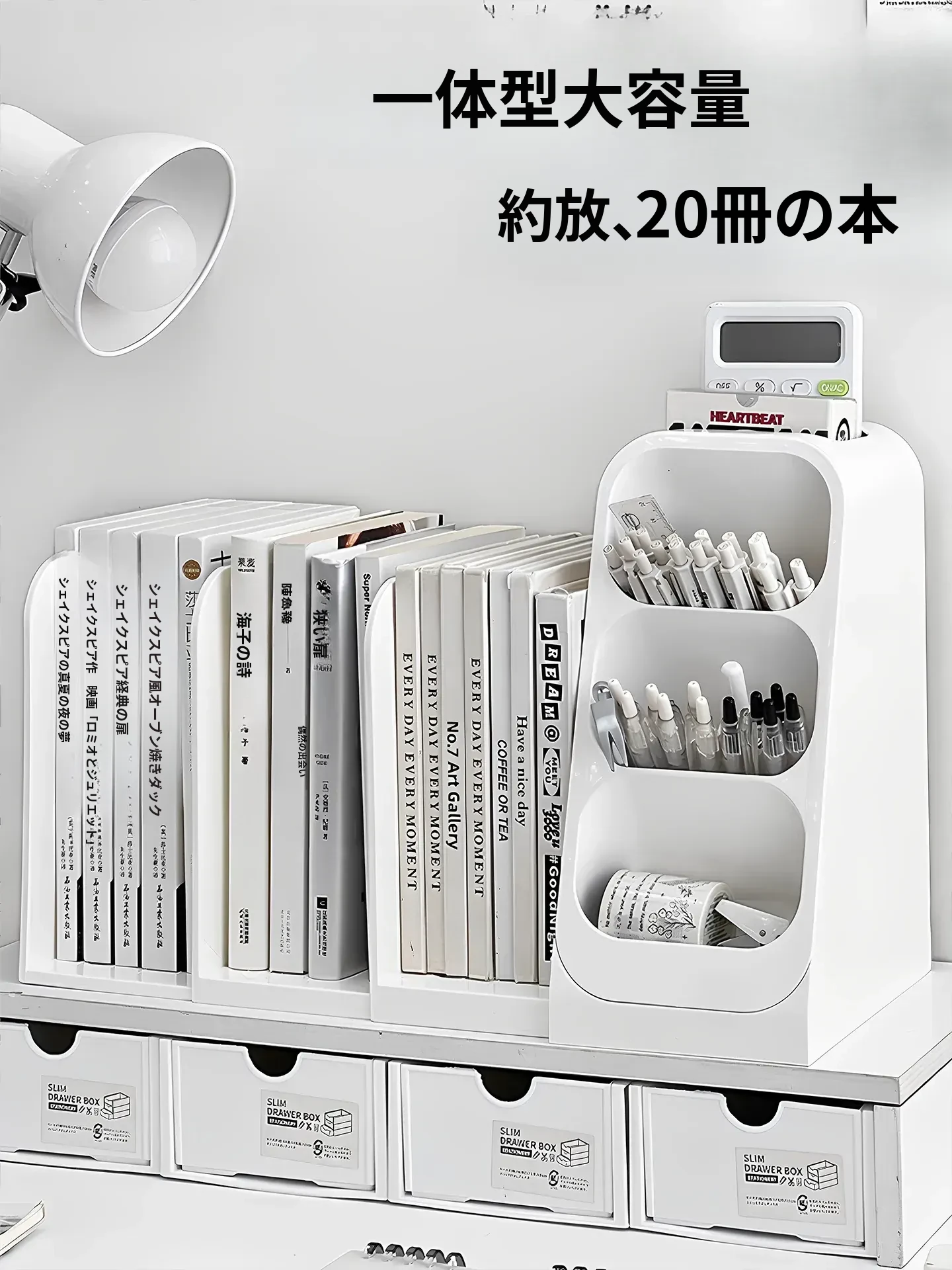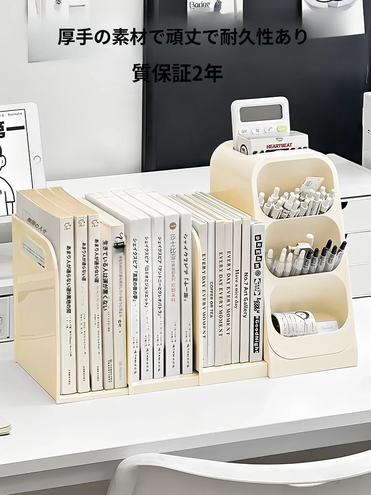 デスク収納ボックス 伸縮可能 大容量ブックシェルフ 多機能 学生寮用 書斎用 文房具ラックで、スッキリ整理整頓!あなたの学びと創造力をサポートします!
