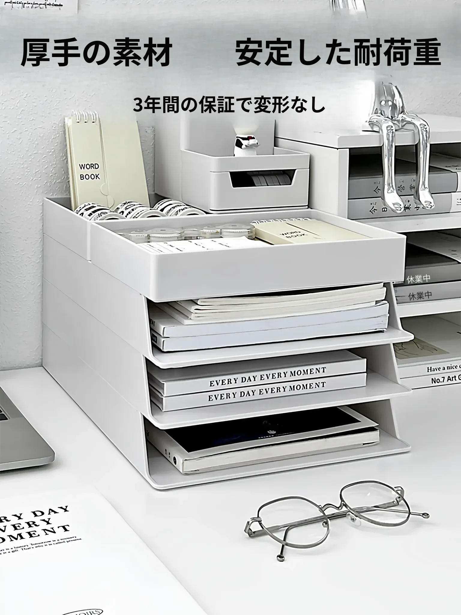 デスク収納ボックス 書類整理ラック A4サイズファイル用の段階的整理スタンド オフィス用品 文房具収納棚 - スタイリッシュで機能的なデザインで、デスクをスッキリ整頓!