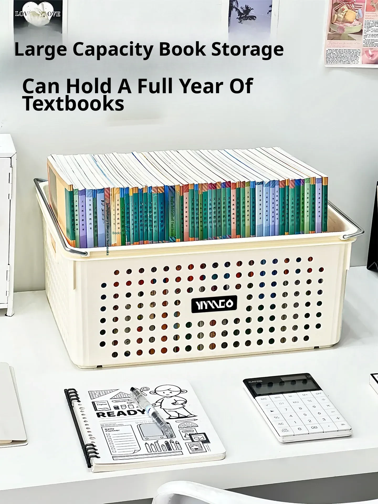 Large Capacity Desktop Book Storage Basket - Mobile with Wheels, Ideal for Organizing Student Books, Stationery, and Snacks - Perfect for Home or Classroom Use!