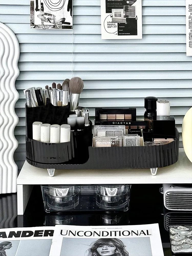 Elegant Makeup Organizer - Spacious Desktop Cosmetic Storage Box for Skincare, Lipsticks, and Brushes - Perfect for Your Vanity Setup