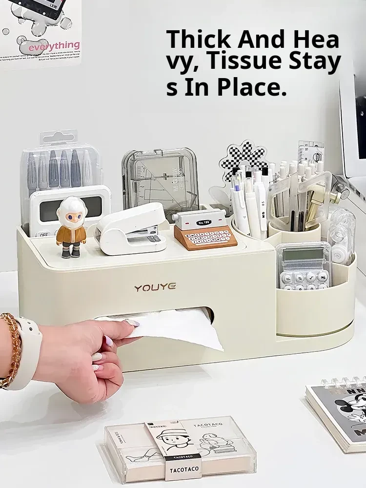 Multi-Functional Thickened Desktop Tissue Organizer Box - Student Stationery Storage, Creative Pen Holder, Desktop Tissue Dispenser, Perfect for Study and Workspaces!