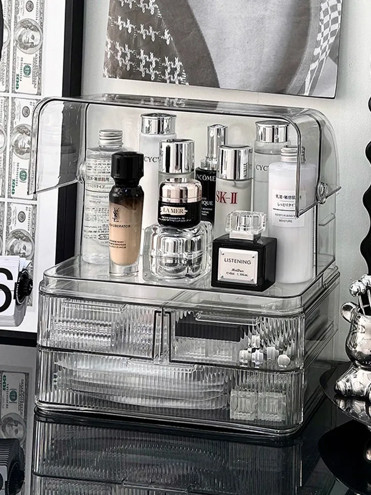 Acrylic Makeup Organizer Box - Stylish and Spacious Vanity Storage for Skincare Products - Dustproof and Elegant Design, Perfect for Your Dressing Table