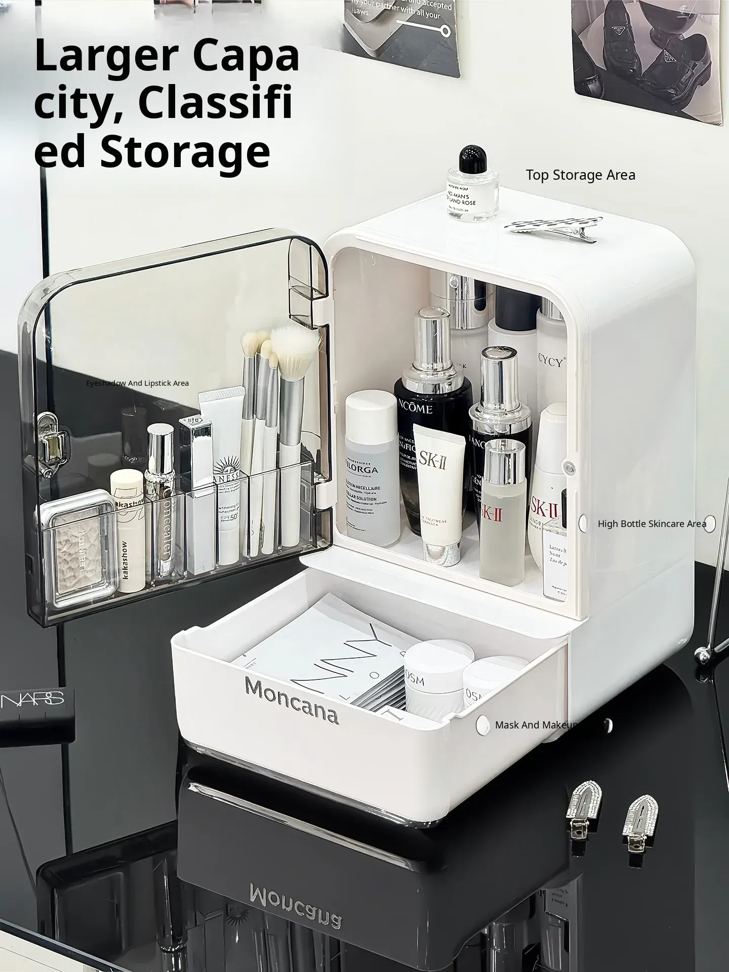 Premium Makeup Organizer Box - Dustproof Cosmetic Storage for Vanity, Large Capacity Skincare Case, Stylish and Functional Makeup Display Solution