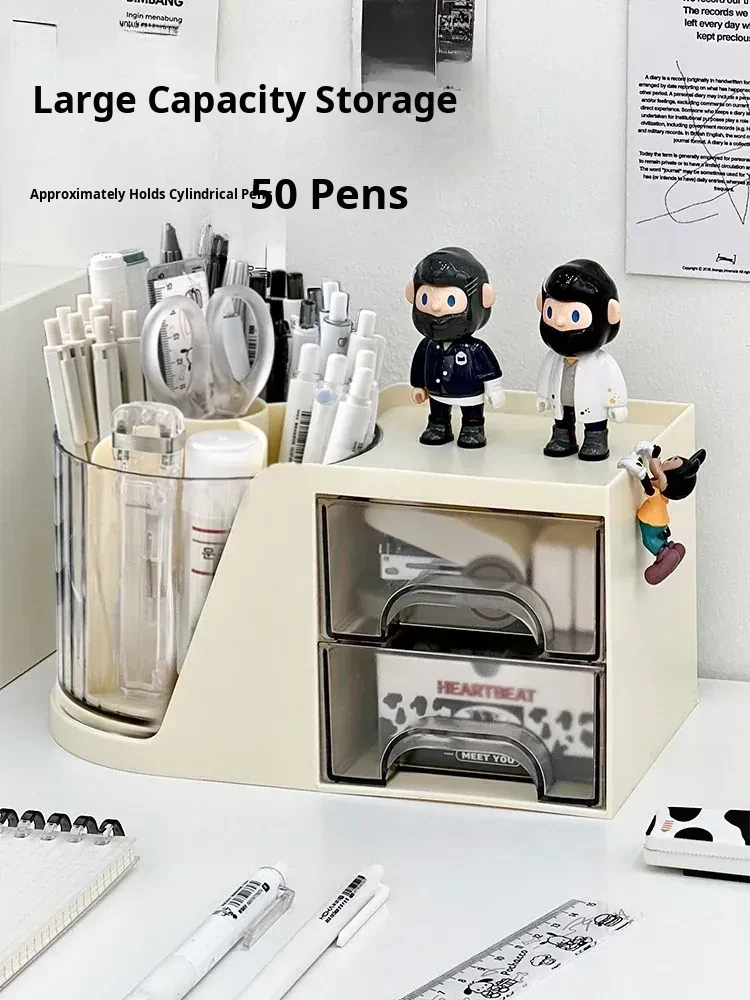 Rotating Pencil Holder with Drawers – Stylish Desk Organizer for Students and Office Use, Perfect for Stationery Storage and Desk Clutter Management