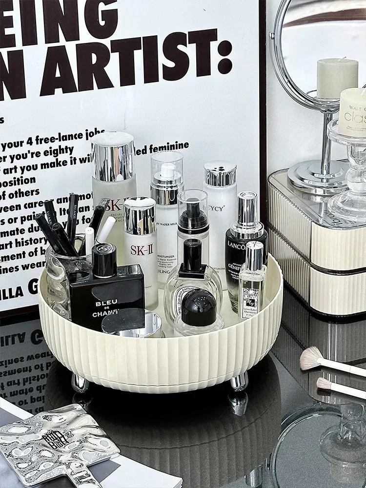 Elegant Rotating Cosmetic Organizer - Perfume Display Rack for Bedroom Vanity - Stylish Skincare Storage Box for a Clutter-Free Makeup Table