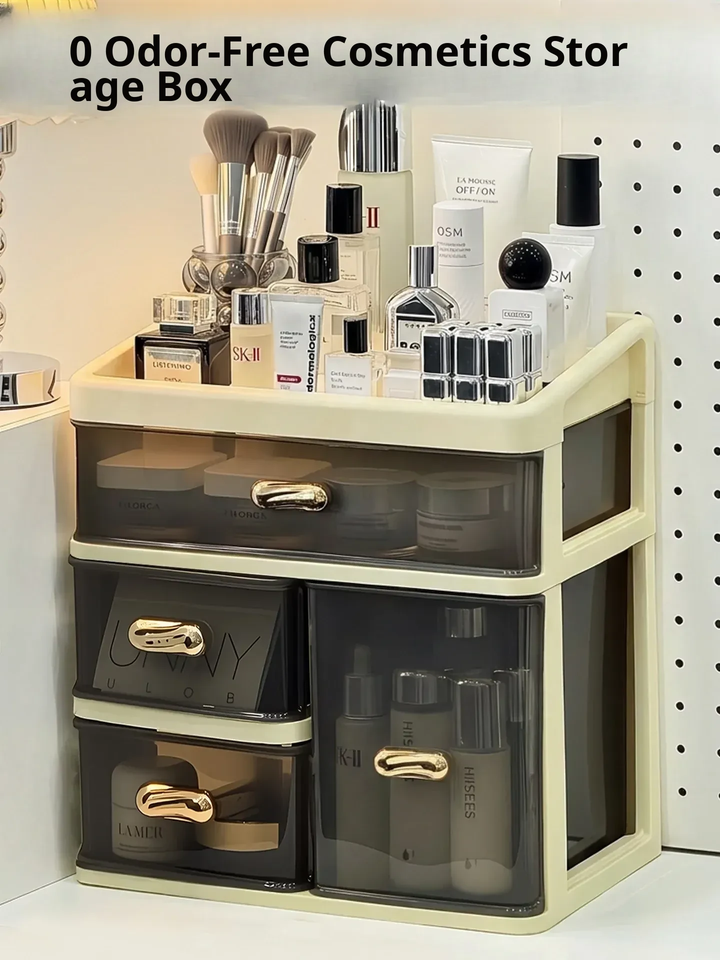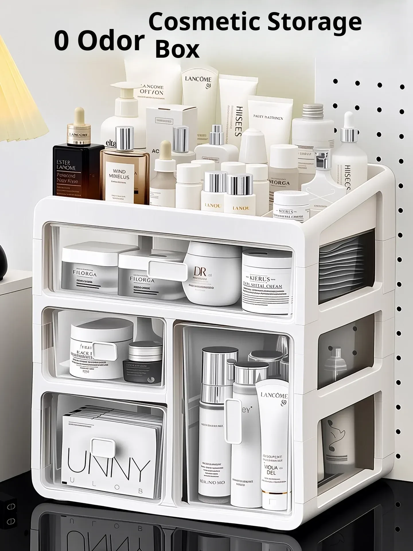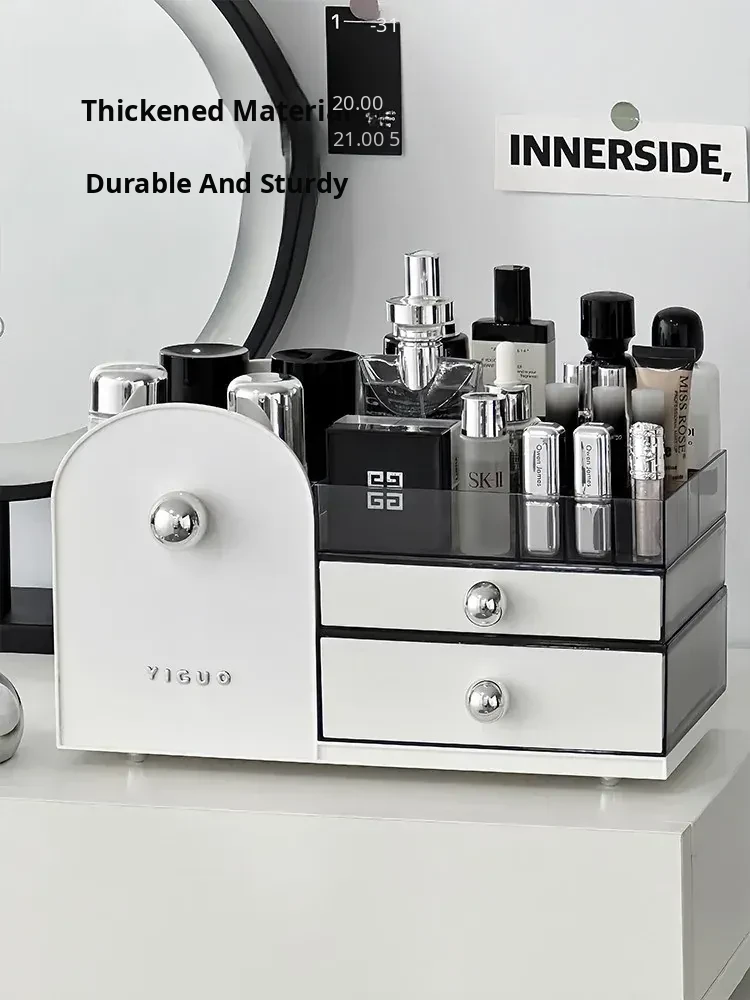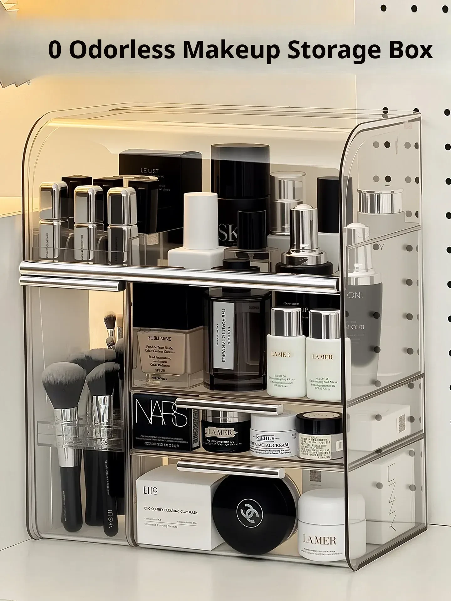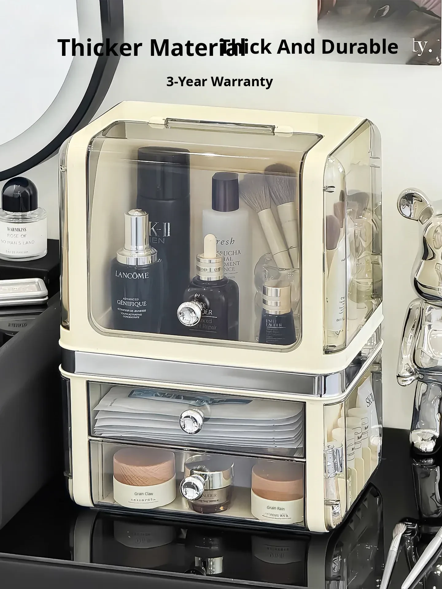 Large Capacity Makeup Organizer - Dustproof Desktop Storage Box for Cosmetics, Lipsticks, and Skincare Products with Drawer Design - Perfect for Your Vanity!