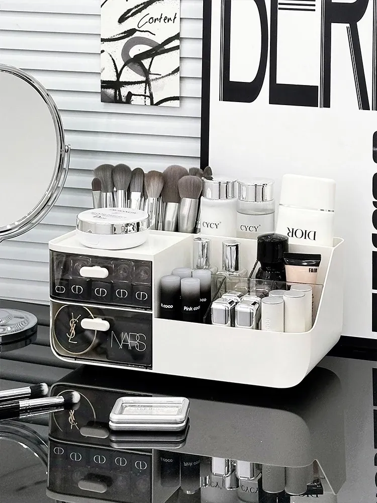 Elegant Desktop Makeup Organizer - Stylish Lipstick Holder and Skincare Brush Storage for Your Vanity - Perfect Drawer Box for all Your Beauty Essentials